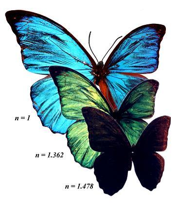L’iridescence des ailes de papillons est une couleur physique due à la diffusion de la lumière. |