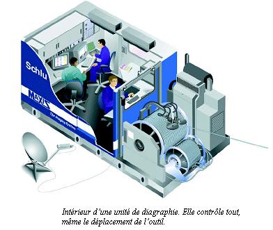 Une diagraphie est exécutée dans un laboratoire portable sur un camion, pour des forages sur terre et dans une cabine de diagraphie portable, pour des forages en mer. On descend des outils dans le puits par un câble. Une fois le fond atteint, ils sont lentement remontés. Les propriétés des formations sont mesurées en cours de remontée. Les outils transmettent les données instantanément aux ordinateurs en laboratoire. Les données sont traitées par des ordinateurs en temps réel et interprétées par des experts. Une fois réunies, elles donnent finalement des diagraphies qui indiquent la présence de pétrole ou de gaz. Une diagraphie peut aussi être exécutée en cours de forage. Cette méthode procure aux opérateurs des informations qui permettent d’adapter plus précisément le forage aux différentes formations rocheuses. Toutes les informations collectées sont transmises à la surface pour y être analysées. Une diagraphie par câble doit être exécutée après le forage en complément de celui-ci. Cuvelage et cementation |