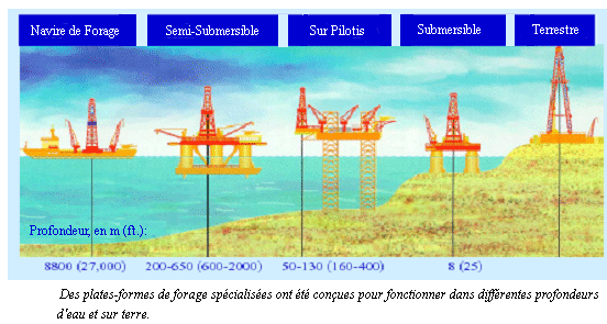 Types de plates-formes Il existe de nombreux types de plates-formes de forage Les deux catégories principales sont les installations terrestres et les installations en mer.