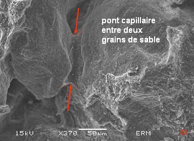 Si le sable s'écoule dans de l'eau, la montée capillaire verticalise
