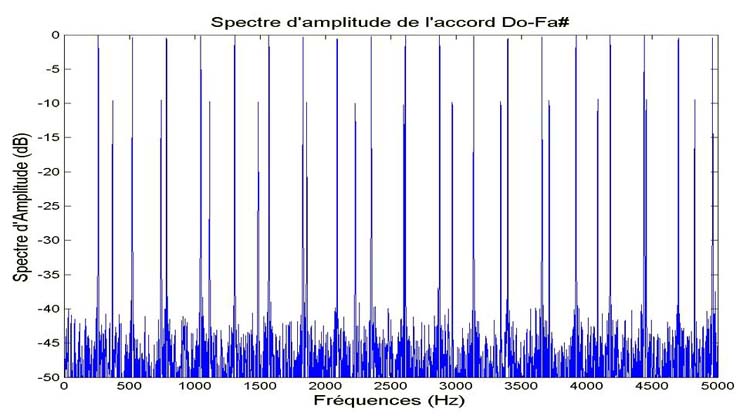 Figure : Spectre d’amplitude d’un accord de 2 sons synthétiques
