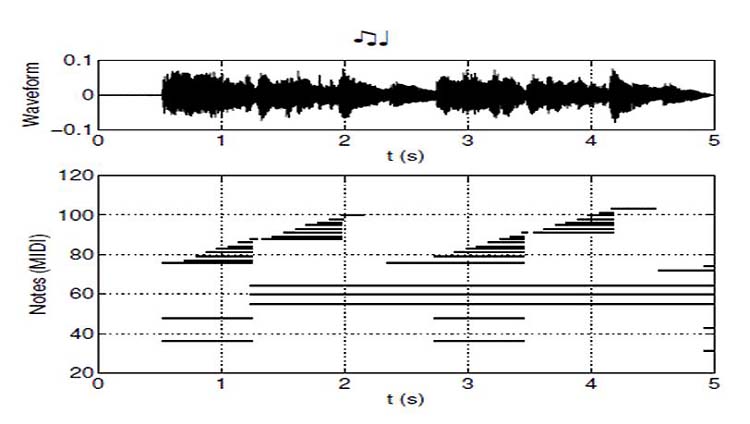 Figure : Image de piano roll : En haut, on reconnait la représentation
