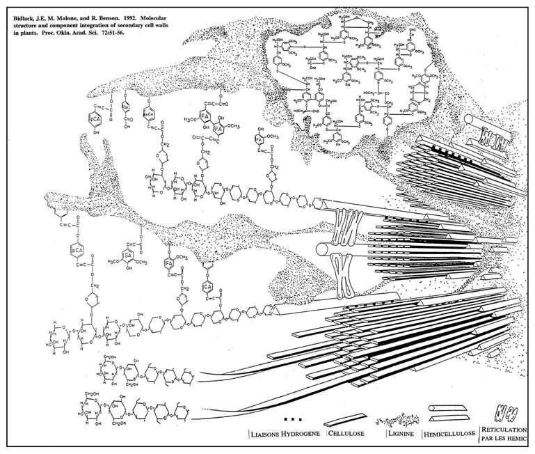 Essentielles aux plantes avant récolte, les lignines sont des polymères phénoliques qui constituent le principal obstacle aux transformations biologiques ou industrielles des parois. Existe-t-il des parois lignifiées plus aptes à ces transformations et, dans ce cas, quelles sont les spécificités structurales de ces parois? Il existe deux stratégies complémentaires pour répondre à cette question importante pour la valorisation rationnelle des ligno-celluloses. On peut utiliser des plantes modèles affectées dans leur lignification par voie génétique et étudier l’impact des modifications structurales des lignines sur les propriétés des parois. Par ailleurs, on peut mimer, in vitro, le processus de lignification, processus radicalaire initié par oxydation enzymatique. En réalisant cette réaction dans des conditions contrôlées, il est possible de faire varier la structure des lignines afin de mieux comprendre l’impact de ces polymères sur les propriétés des parois.