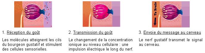 en contact avec la salive, la langue et le système olfactif perçoivent