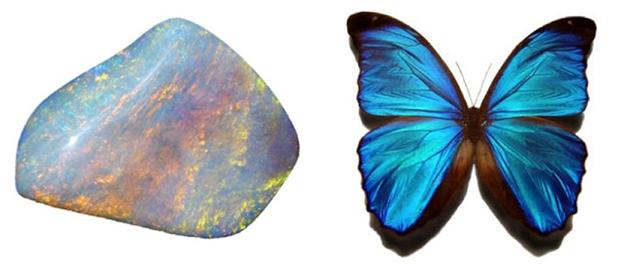 technicien. La couleur naît de la lumière et c’est au moment où elle pénètre dans la matière que la lumière se transforme en couleur. Deux types de phénomènes se produisent alors selon la nature de l’interaction ‘rayonnement-matière’. Les couleurs physiques sont dues à une modification du chemin optique suivi par la lumière. C’est la diffusion qui conduit au bleu du ciel, au rouge rubis des vitraux, à l’opalescence des opales ou à l’iridescence des ailes de papillon.