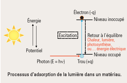 La conversion directe des photons en électrons a également l’intérêt – essentiel – d’être dispensée de cycle thermique intermédiaire: aucun fluide ni turbine ne sont nécessaires, faisant de ce mode de production une source d’énergie simple et robuste. Séparer les électrons des trous